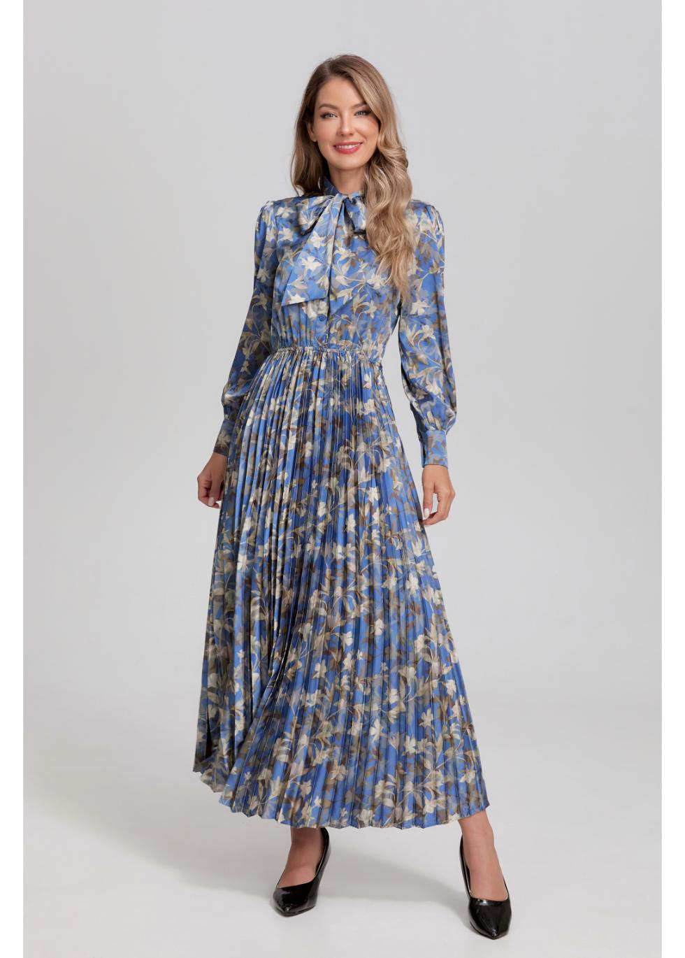 Effortlessly elegant and timeless, this floral pleated midi dress is designed to flatter while keeping comfort and modesty front and center. Crafted in a soft blue base with delicate botanical detailing, this dress features a classic tie-neck bow that adds a refined, feminine touch.