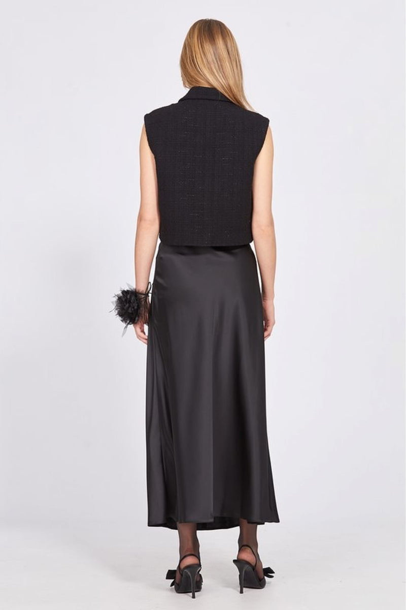 Three Metallic Color Blocked Pleated Maxi Skirt - Gracia S23504
