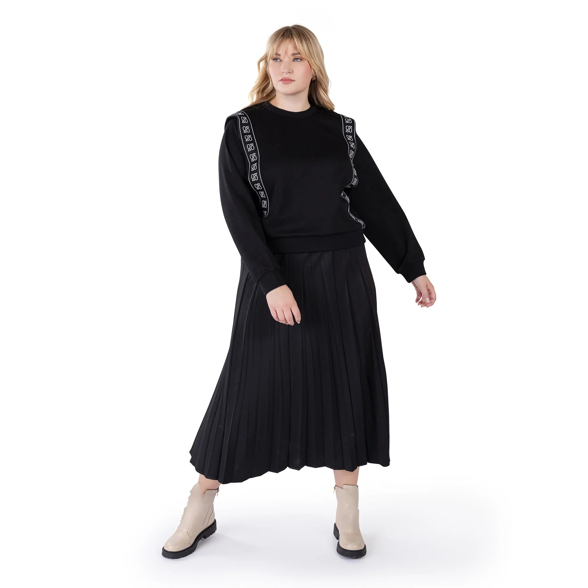 Sweatshirt with suspender vibe detail. Sleeves are tucked under the shoulder