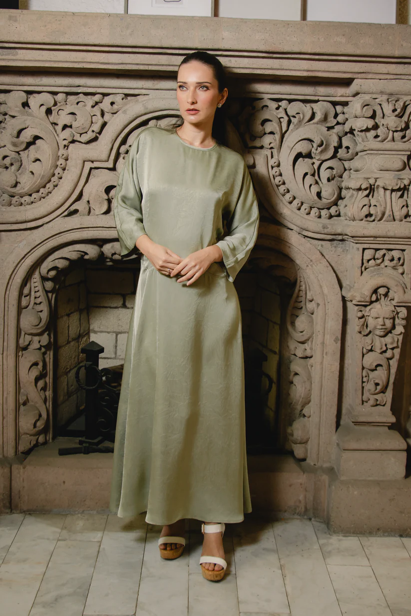 Slip into effortless elegance with this crushed satin dress in a serene sage hue. The luxurious crushed satin fabric creates a soft, dimensional texture that catches the light beautifully, while the rich sage tone flatters every complexion. Perfect for date nights, celebrations, or whenever you want to feel absolutely fabulous. This versatile piece transitions seamlessly from day to evening, making it a wardrobe essential that'll have you reaching for it again and again.